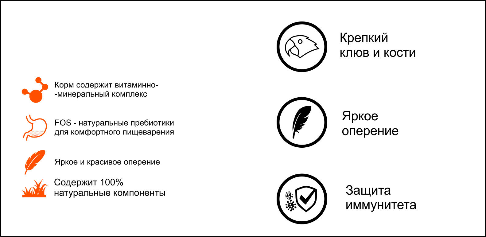 Ваш любимый крылатый друг получит полный спектр необходимых элементов для активной жизни, красивой внешности и хорошего самочувствия с нашим специализированным кормом.
